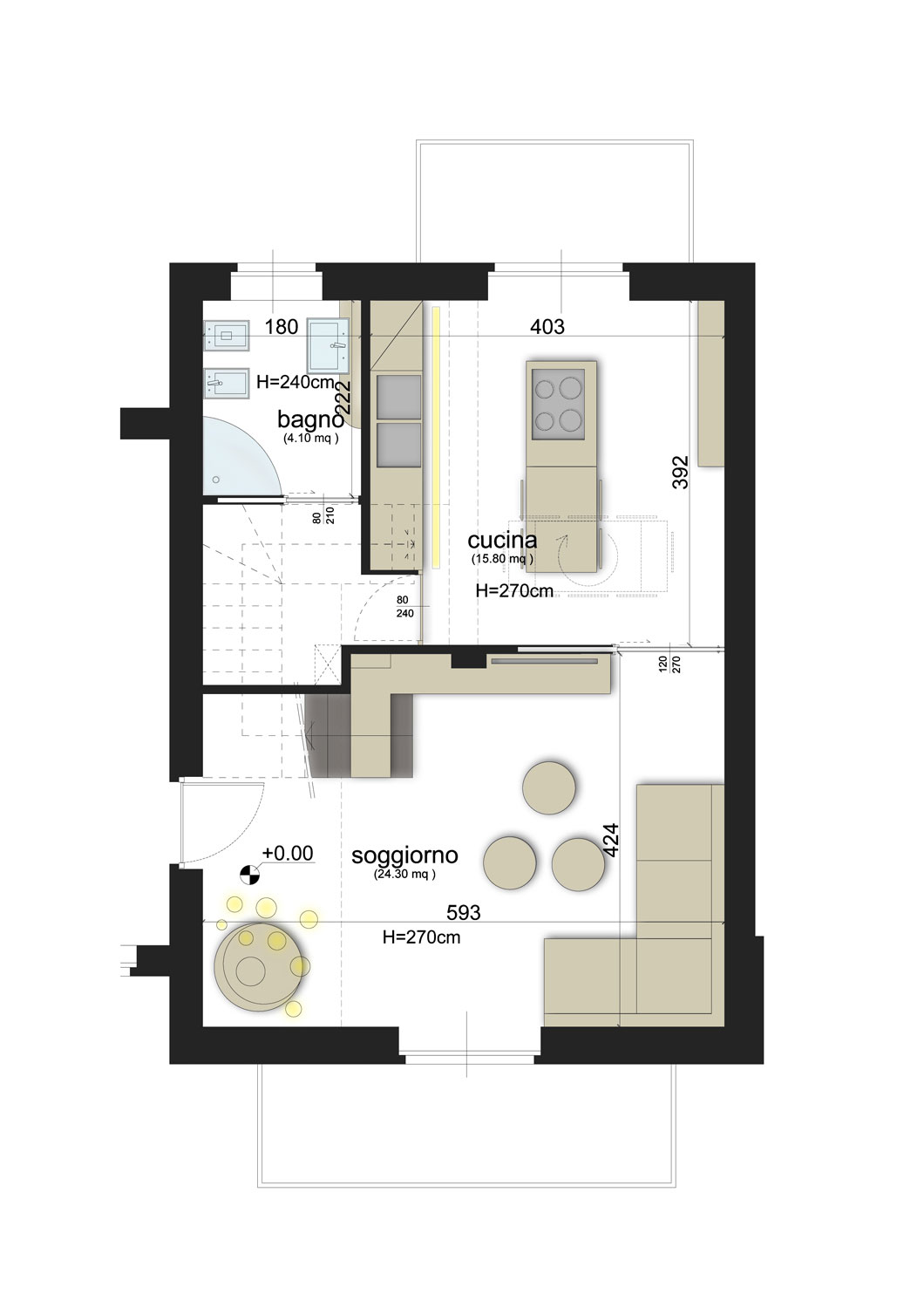Ogni unità immobiliare è costituita dal piano terra che è collegato dall’interno al relativo piano sottotetto, area verde di pertinenza, box auto e cantine.
